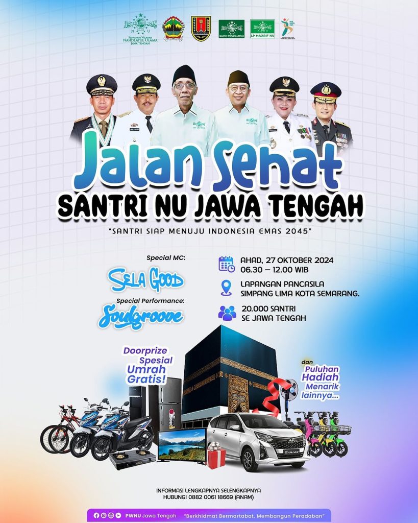 SUARAMUDA, SEMARANG – Dalam rangka menyambut Hari Santri 2024, Pengurus Wilayah Nahdlatul Ulama (PWNU) Jawa Tengah menggelar kegiatan Jalan Sehat Santri NU Jawa Tengah dengan tema “Santri Siap Menuju Indonesia Emas 2045”.