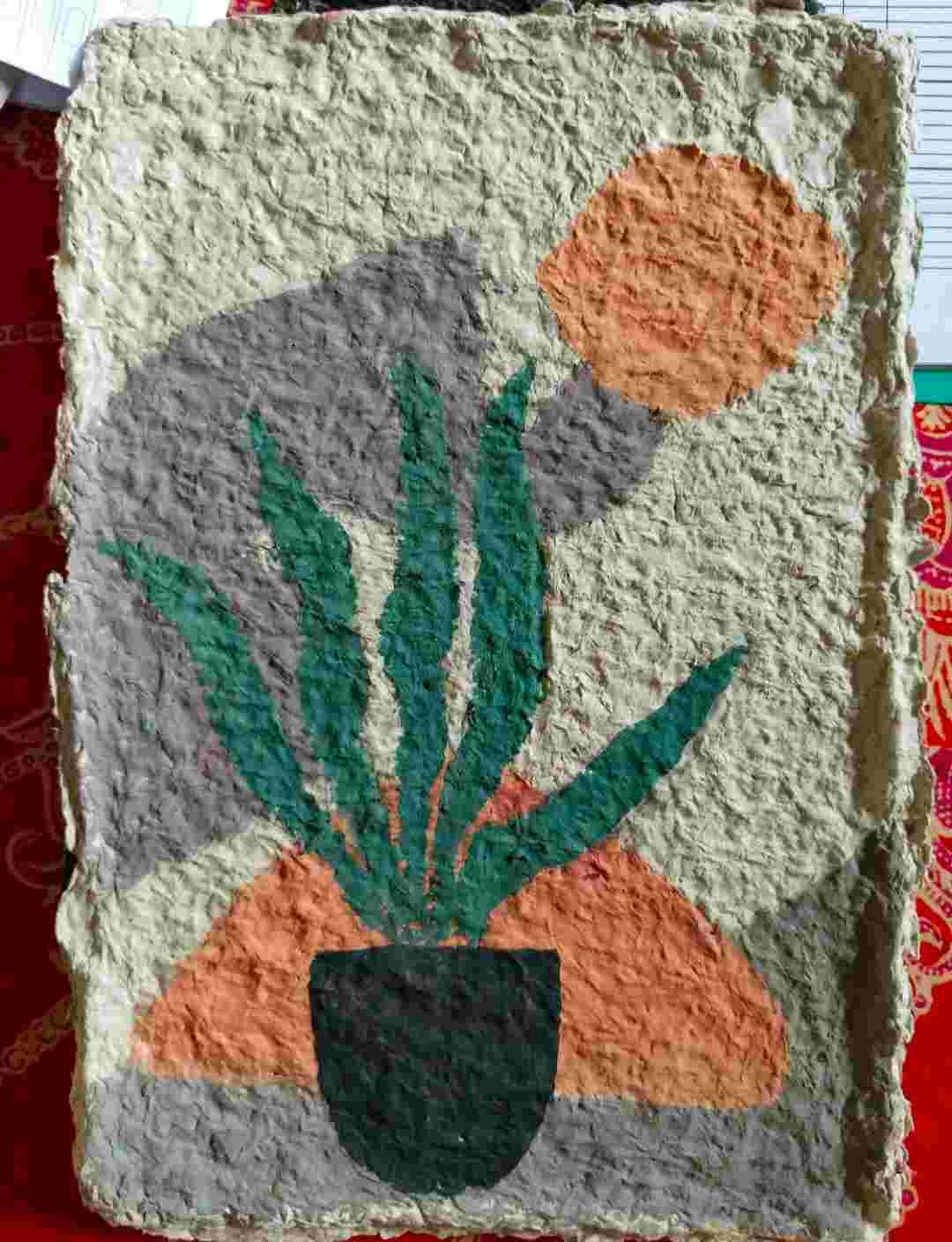 Setelah kertas daur ulang siap, siswa kelas 9 mulai menuangkan kreativitas mereka dengan melukis menggunakan cat air.