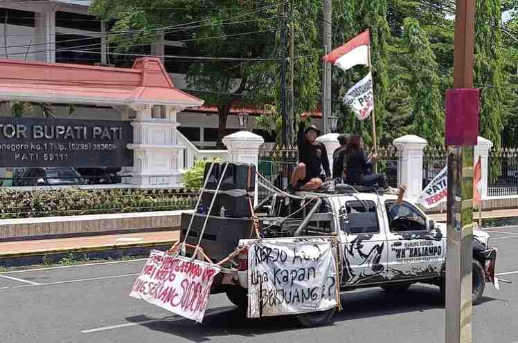 Konvoi tersebut menyusuri beberapa wilayah di Kabupaten Pati, membawa bendera, banner, dan poster seruan pemakzulan.