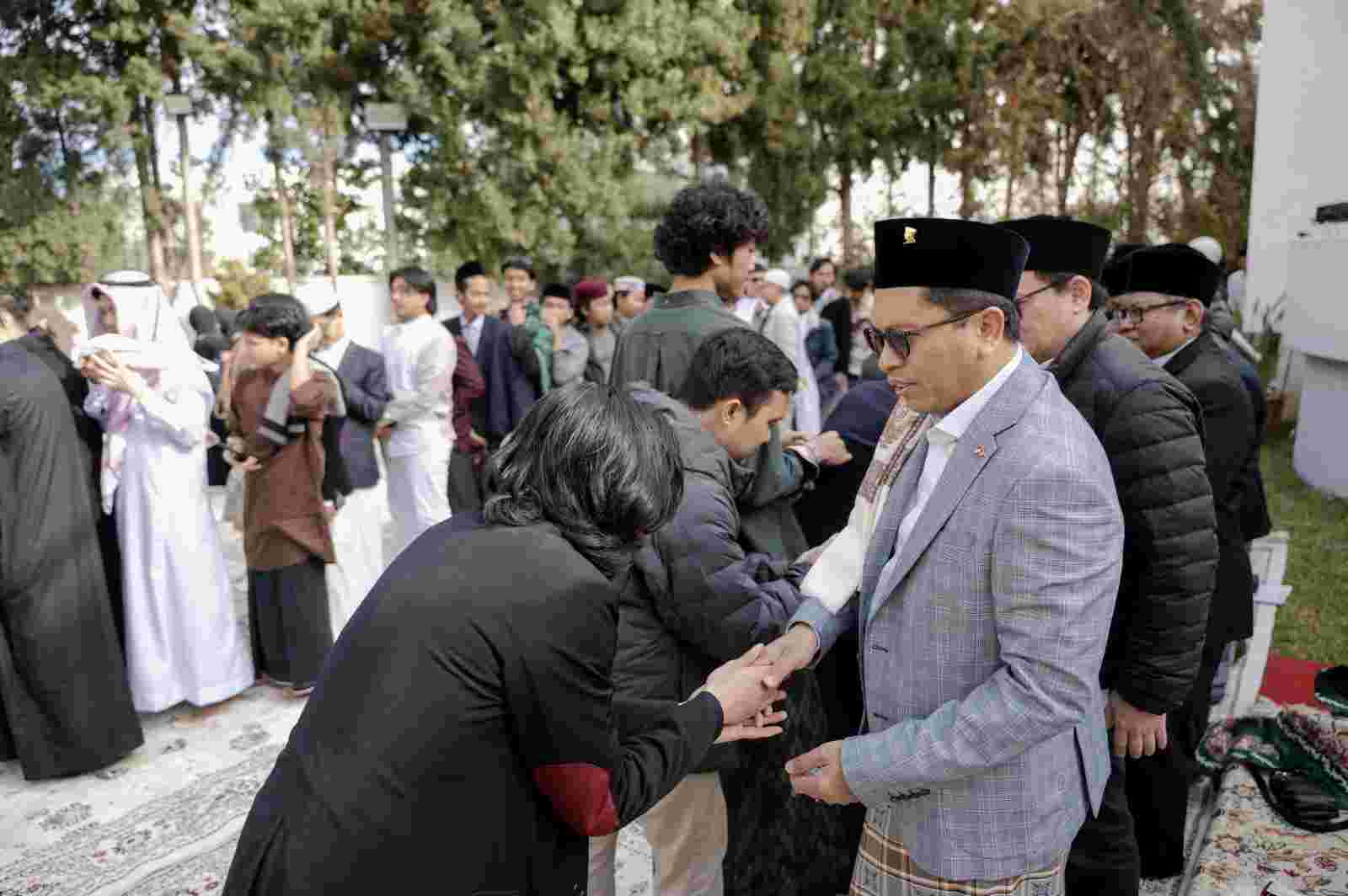 Momen ini menjadi ruang untuk mempererat silaturahmi, terutama bagi mereka yang jauh dari keluarga di tanah air. Suasana kekeluargaan semakin terasa dengan hadirnya hidangan khas lebaran Indonesia yang disajikan kepada para tamu.